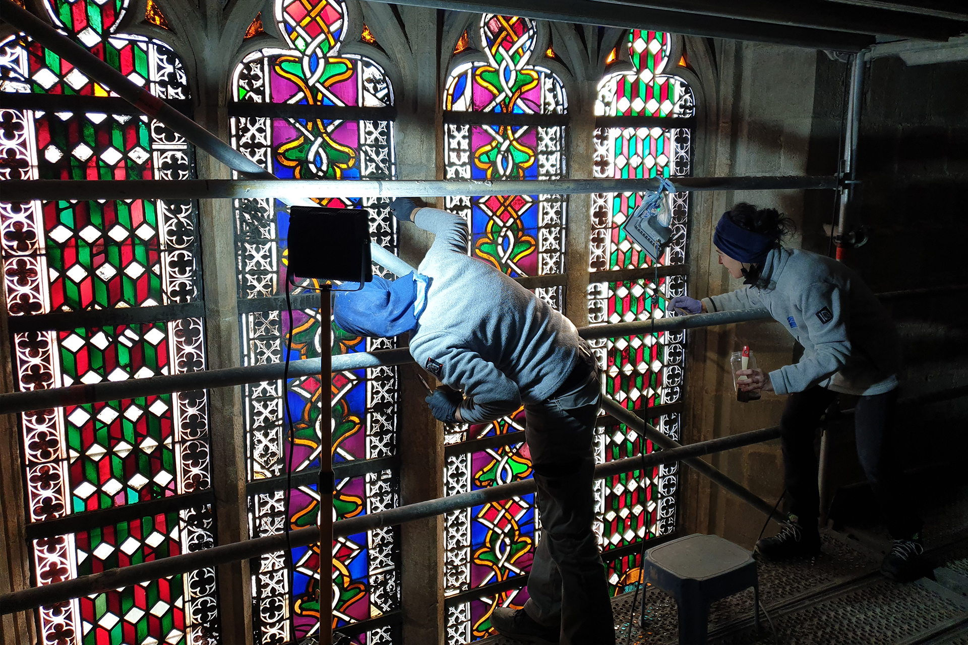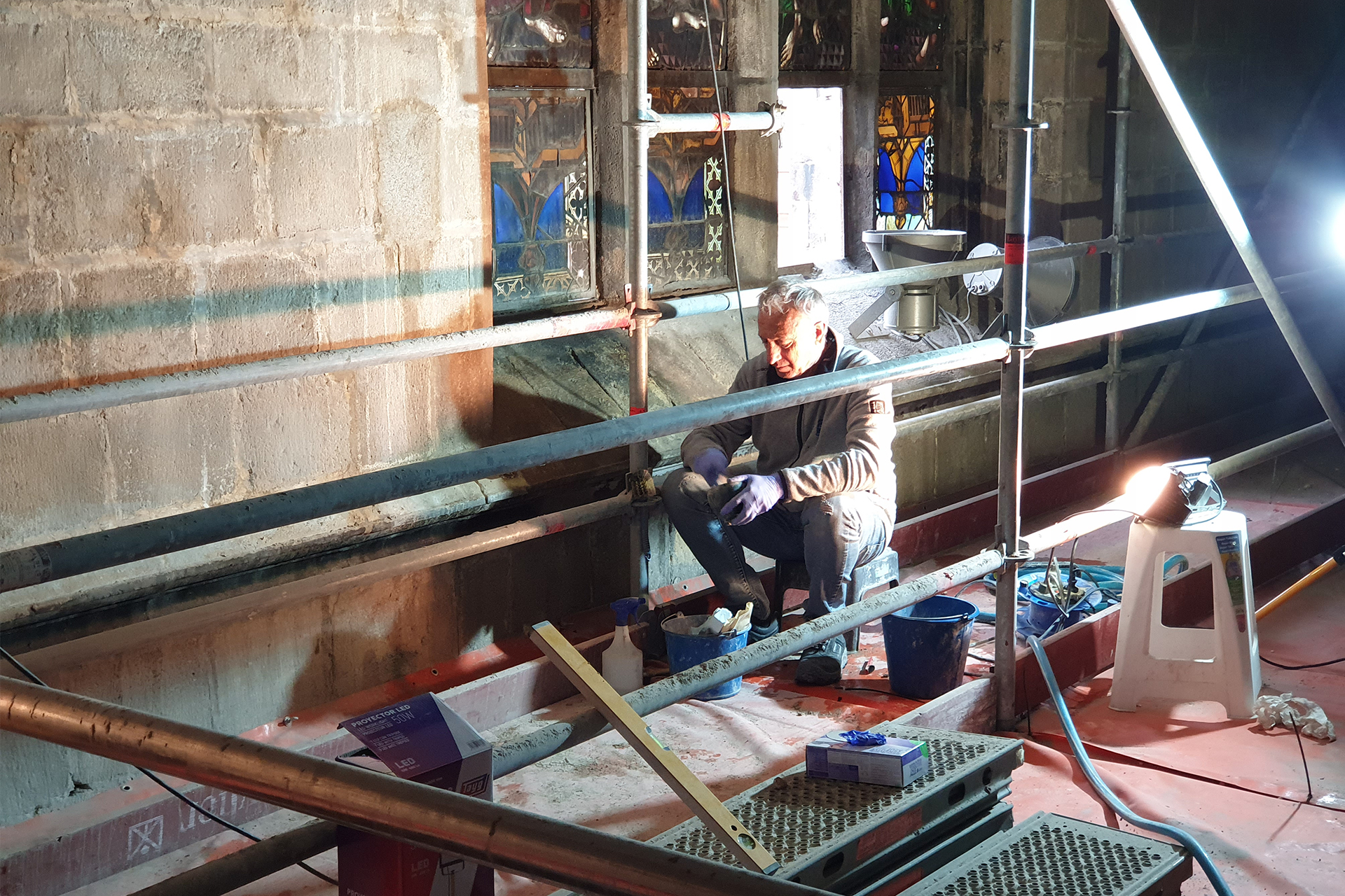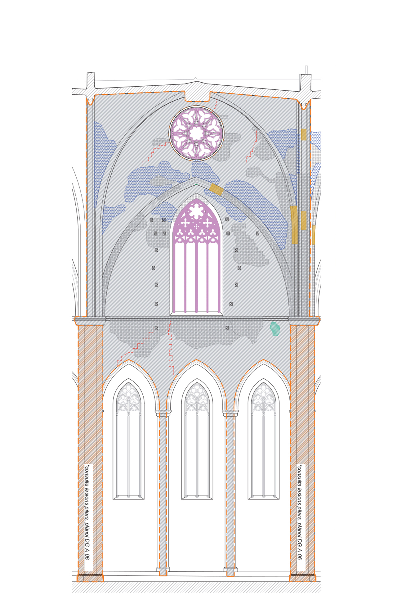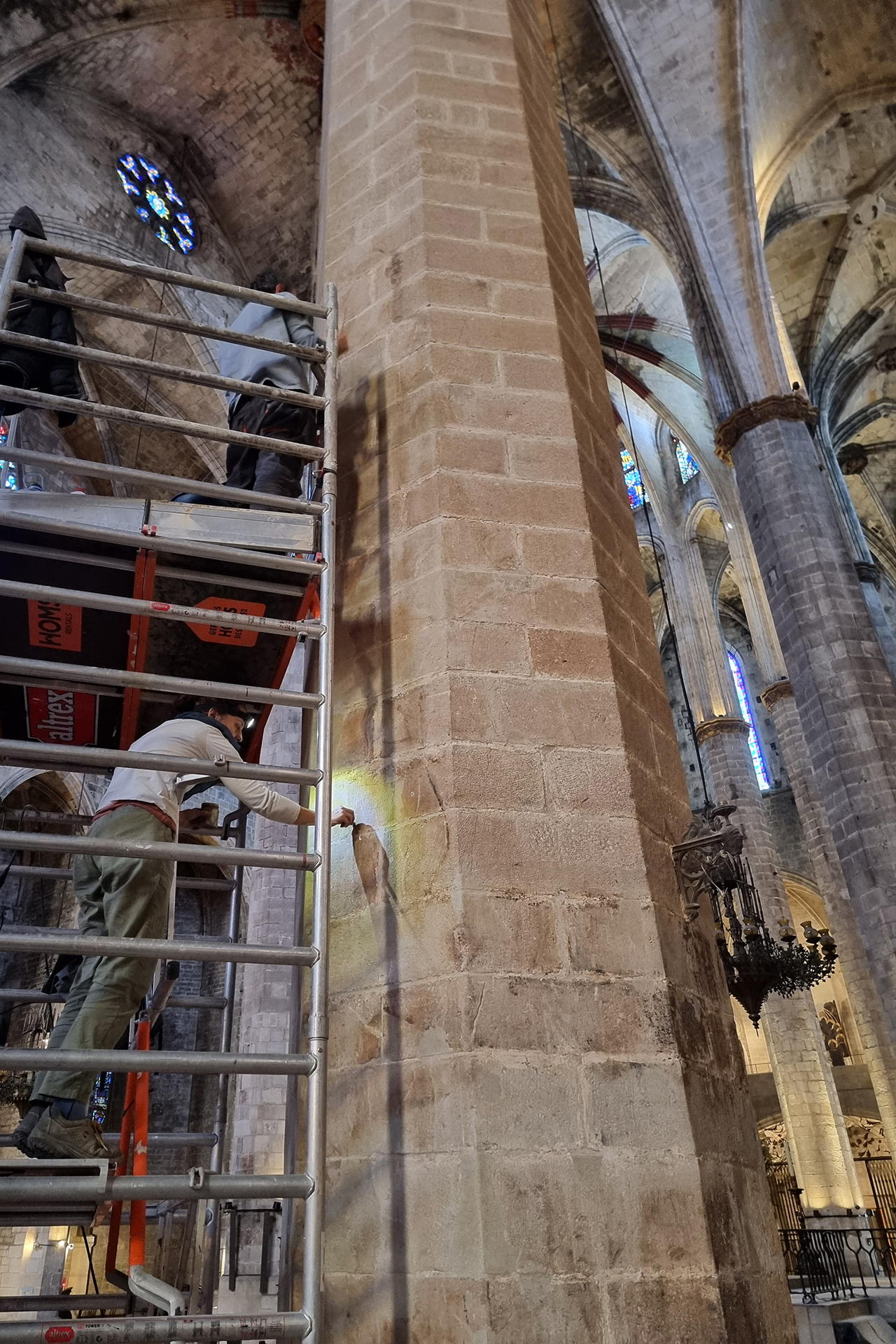 Las obras han consistido en la limpieza general de la mampostería y en la eliminación de manchas y restos de hollín. También se han recuperado los encintados históricos, en algunos casos con restos pictóricos que resaltan la junta; además, se han rejuntado las pérdidas de mortero entre sillares. Los nervios de las arcuaciones, especialmente afectados por el fuego, se han consolidado y completado volumétricamente. Destaca por el buen nivel de conservación algunas llaves de bóveda, que bajo el hollín, conservaban su acabado original.